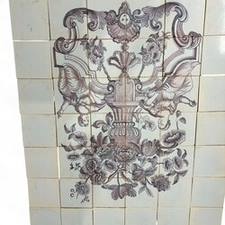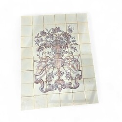 | Omschrijving | Een 20e eeuws 48-delig tegeltableau (en drie losse tegels), mangaan, met voorstelling van een bloemenvaas, omringd door twee vrouwen. Geproduceerd door Westraven, Utrecht. |