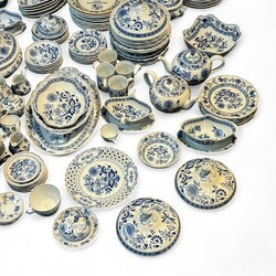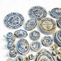 | Omschrijving | Een zeer uitgebreid porseleinen Zwiebelmuster servies, Hutschenreuther. Onder andere borden, terrines, kop en schotels etc. |
