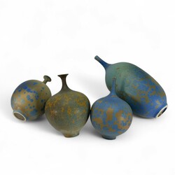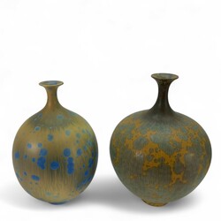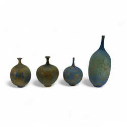 | Omschrijving | Lot van vier 20e eeuwse bolvaasjes met kristalglazuren, allen gesigneerd Hein Severijns (Maastricht, 1936) |