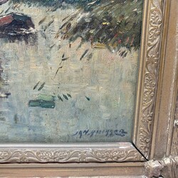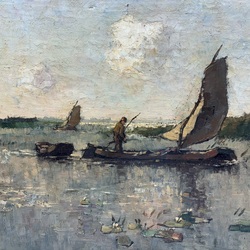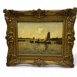 | Omschrijving | Schilderij olieverf op doek, . Waterlandschap/ Plasgezicht met man in schuit. Gesigneerd Jan Knikker (senior 1889-1957). In originele lijst. |
