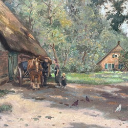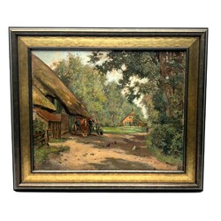 | Omschrijving | Schilderij, olieverf op doek. Figuren bij een boerderij. Linksonder gesigneerd Johannes Elsinga (Wommels 1893 - Leeuwarden 1969), gedateerd 1945. |