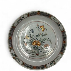 | Omschrijving | Een antiek vroeg 18e eeuws Chinees porseleinen bord, Kangxi periode (1661-1722). Famille Verte met floraal decor, de achterzijde met café au lait rand en tevens verte bloemdecor. |