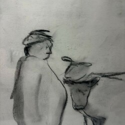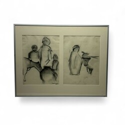 | Omschrijving | Twee houtskooltekeningen op papier, veemarkttaferelen. Eén gemonogrammeerd, één gesigneerd Klaas Koopmans (Garijp 1920-2006) |