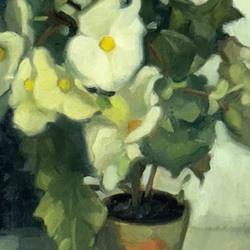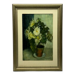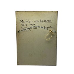 | Omschrijving | Schilderij, olieverf op doek. Stilleven met witte begonia's in terracotta potje. Linksonder gesigneerd Piet Hein van Asperen (Harlingen 1895 - Leeuwarden 1969). |