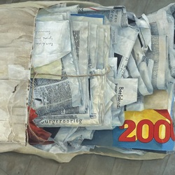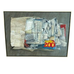 | Omschrijving | Schilderij, olieverf op doek. 'Doos met oud papier', gesigneerd Rein de Vries (1980). |