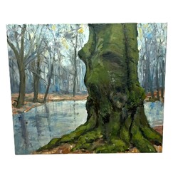 | Omschrijving | Schilderij, olieverf op doek. 'Veenklooster bos'. Rechtsonder gemonogrammeerd Rein Halbersma (Leeuwarden 1949 - Kollum 2021), gedateerd 1999. |