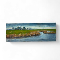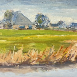 | Omschrijving | Schilderij, olieverf op doek. Voorstelling van een Fries landschap, verso titel ‘Tussen Engwierum en Ee’. Linksonder gemonogrammeerd ‘RHA’ = Rein Halbersma (Leeuwarden 1949 - Kollum 2021). Zonder lijst. |