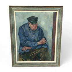| Omschrijving | Schilderij, olieverf op doek. Portret, titel 'Veluwse boer'. Gesigneerd Roeland Koning (Amsterdam 1898 - 1985). Met verso label 'Stedelijk museum de Lakenhal', tentoonstelling Roeland Koning 70 jaar, 1969. |