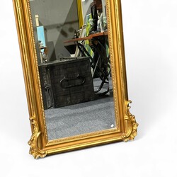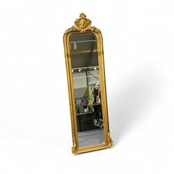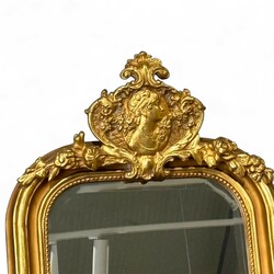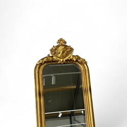 Hoge vergulde spiegel met portret op de kuif,rechts