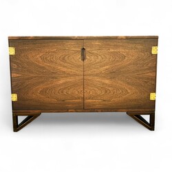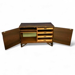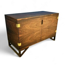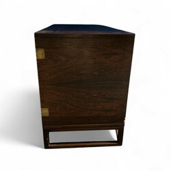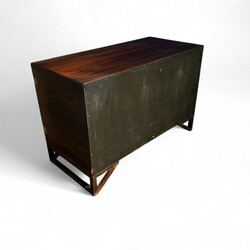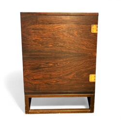 | Omschrijving | Een jaren '50 palissanderhouten kastje met bronzen scharnieren aan de buitenzijde, aan de binnenkant met twee leggers en vier dienbladvormige lades. Ontwerp Svend Langkilde voor Langkilde Mobler, Denemarken |
