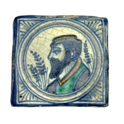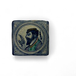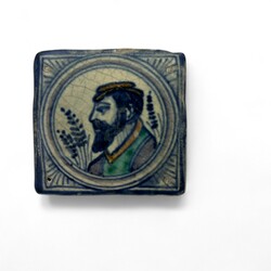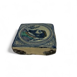 | Omschrijving | Antieke tegel, medaillon, man met hoed. |
