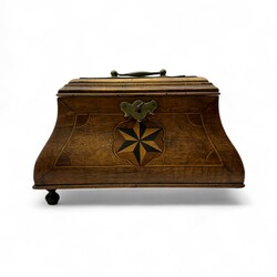 Een antiek 18e of 19e eeuws intarsia theekistje