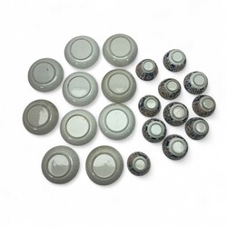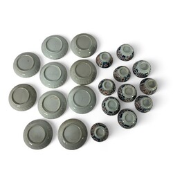 | Afmetingen | Schotels 13 cm doorsnede, koppen 4,5 cm hoog x 8 cm doorsnede. |
