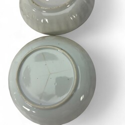| Conditie | Vier schotels met bodemhaarlijn. 1 kopje met haarlijn en 1 gelijmd. |