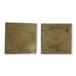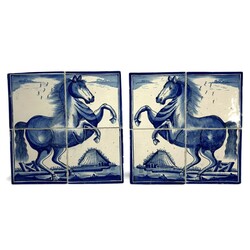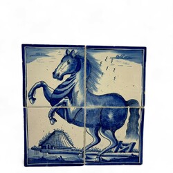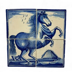 | Omschrijving | Lot van twee antieke 18e eeuwse Fries aardewerken plaquettes, paarden. |
