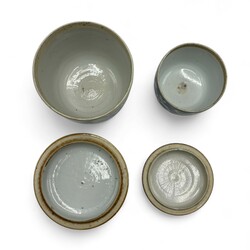 | Conditie | Grote deksel chip en pot gaaf. Kleine pot deksel onderzijde chip en pot haarlijn bodem. |