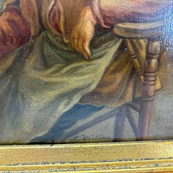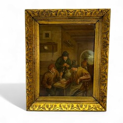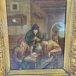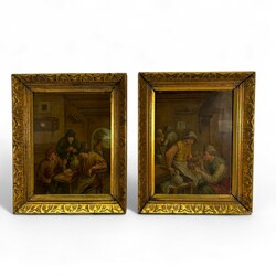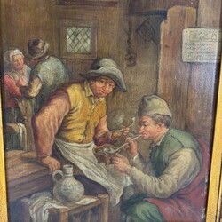 | Omschrijving | Twee schilderijen olieverf op paneel, . Twee Hollandse interieurs met diverse pijprokende figuren aan tafel, Naar Adriaan van Ostade. Vroeg 20e eeuws. Beide Gesigneerd C. Brillon. Gelijst. |