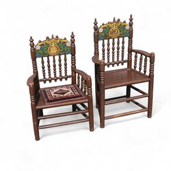 | Omschrijving | Lot van twee volkskunst bruidsstoelen, gedateerd 1827 |