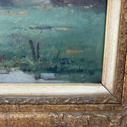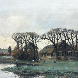 | Omschrijving | Schilderij, olieverf op doek. Boerderij aan de vaart, verso titel ‘Blaricum’ . Rechtsonder gesigneerd Wilhelm Alexander (Willem) Knip (Amsterdam 1883 – Blaricum 1967) |