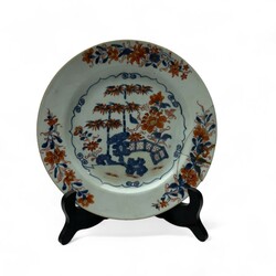 | Omschrijving | Lot van zes Qianlong Chinees porseleinen imari schotels. Met florale randen en pioenrrozen, hekwerk en bamboe op het plat. ca 1750. |