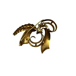 | Omschrijving | Een 20e eeuwse Italiaans 18 karaats (750/1000) geelgouden strikbroche, bladvormig, bezet met turkoois. |
