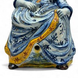 | Omschrijving | Een antieke polychroom gedecoreerde aardewerken tafelfontein, zgn. ‘bobbejak’. Voorstelling van een zittende vrouw, in Delftse stijl. Vermoedelijk Noord-Frankrijk, 18e/19e eeuw. |