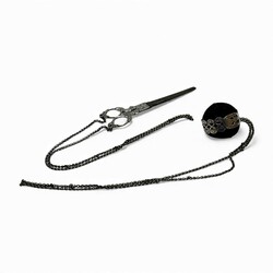 | Kavel | 306. 19e eeuwse zilveren naaischaar en speldenkussen, beide aan jasseroncollier |