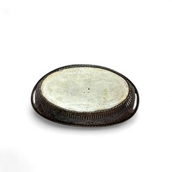 | Omschrijving | Een 20e eeuwse tweede gehalte (835/1000) zilveren broodmand. Schuitvormig model, ajour gezaagd, met twee grepen, aan de onder- en bovenzijde versierd met kabelrand. Gemerkt ‘925’ en Nederlands ZII importkeur. |