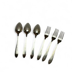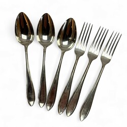 | Omschrijving | Lot van drie 20e eeuwse tweede gehalte (835/1000) Nederlands zilveren couverts. Model puntfilet, allen identiek gekeurd met lopende leeuw, minervakopje, meesterteken ‘VK’ = van Kempen en jaarletter V (1930). |