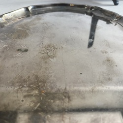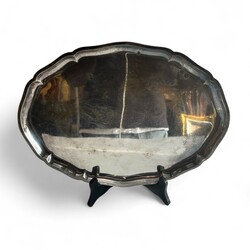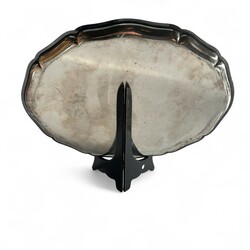 | Omschrijving | Een 20e eeuws tweede gehalte (835/1000) zilveren dienblad, ovaal model, met gecontourneerde rand. Aan de onderzijde gemerkt ‘835’ en ‘WTB’ = Wilhelm T. Binder |