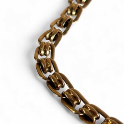 | Omschrijving | Een 20e eeuwse 14 karaats (585/1000, getoetst) geelgouden armband, vermoedelijk gemaakt van een chatelaine. Met onedel oogje. |