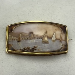 | Kavel | 419. Gouden broche met camee, zeilschepen |