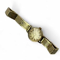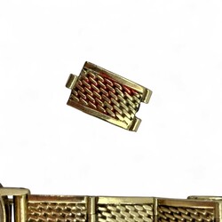 | Omschrijving | Een jaren ‘50 dameshorloge, Pontiac, met geelkleurige wijzerplaat gemerkt ‘Pontiac’ en Incabloc’. met 14 karaats (585/1000) geelgouden kast en band. Met daarbij een extra schakel. |