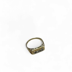 | Omschrijving | Een 20e eeuwse 14 karaats (585/1000) geelgouden damesring, centraal bezet met vier zirkonia’s. |