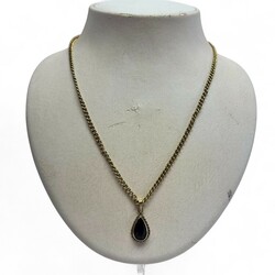 | Kavel | 441. Gouden hanger met granaat aan gouden collier |