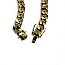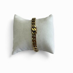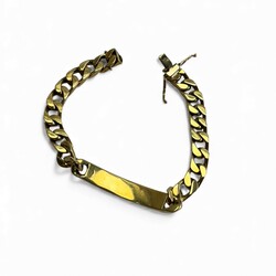 | Omschrijving | Een 20e eeuwse zwaar uitgevoerde 14 karaats (585/1000) geelgouden schakelarmband met naamplaatje, gemerkt ‘585’. |