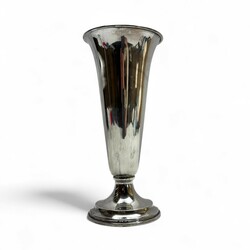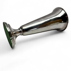 | Omschrijving | Een grote 20e eeuwse eerste gehalte (925/1000) zilveren vaas. Op de voet gemerkt ‘925’ en diverse andere keuren. |