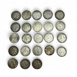 | Omschrijving | Lot diverse zilveren Rijksdaalders, Juliana Koningin der Nederlanden. Diverse jaartallen: 1959 (1x) 1960 (4x), 1961 (7x), 1962 (2x), 1964 (1x), 1963 (1x), 1966 (7x) |