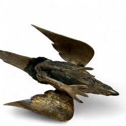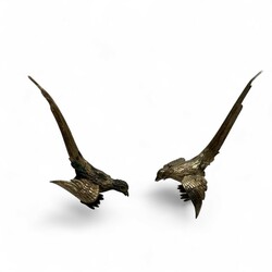 | Omschrijving | Een stel 20e eeuwse tweede gehalte (835/1000) zilveren tafelstukken, fazanten, met gespreide vleugels. Gemerkt op de voet ‘835’, één exemplaar met twee onbekende keuren aan de binnenzijde van de vleugel. |