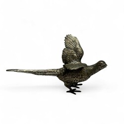 | Omschrijving | Een stel 20e eeuwse tweede gehalte (835/1000) zilveren tafelstukken, fazanten, waarvan één met gespreide vleugels. Gemerkt met lopende leeuw, minervakopje, jaarletter Y (2008) en meesterteken JGz = fa. J. Gelderblom, werkzaam te Schoonhoven vanaf 1966. |