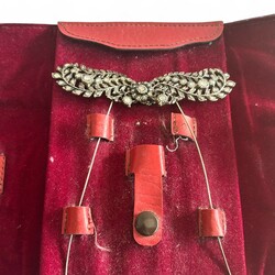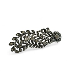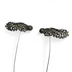 | Omschrijving | Lot van twee antieke 19e eeuwse tweede gehalte (835/1000) Fries zilveren oorijzerspelden, zgn. Friese veren, bezet met roosgeslepen diamant. |