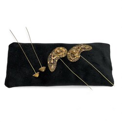 | Conditie | Spelden opnieuw gesoldeerd bij filigrain knoppen, tevens met wat schade |