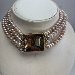 | Kavel | 451. Vierrijig roze parelsnoer met antiek 19e eeuws Volendammer gouden slot |