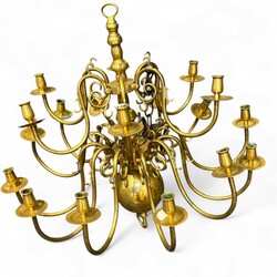 | Omschrijving | Een messing achttienlichts bolkroon, 19e/20e eeuws |