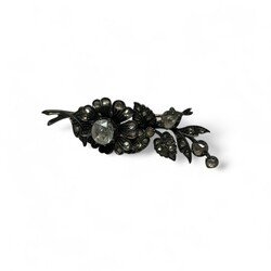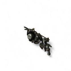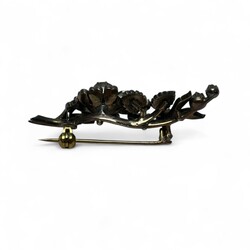 | Kavel | 423. Antieke 19e eeuwse bloembroche met diamantjes |