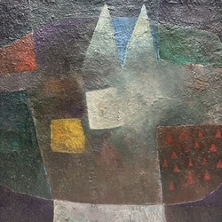 | Omschrijving | Schilderij, olieverf op doek. Compositie met boom, ca. 1960. Verso gesigneerd Boele Bregman (Aengwirden 1918 – Heerenveen 1980).