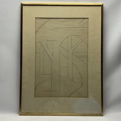 | Omschrijving | Potloodtekening op papier, kubistische compositie met bomen. Ongesigneerd, toegeschreven aan Douwe van der Zweep (Utrecht 1890 – 1975). In Heijdenrijk lijst. |