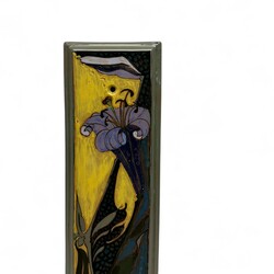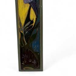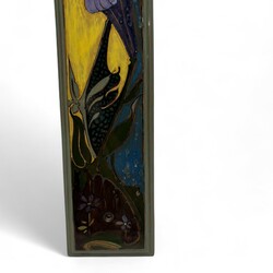 | Omschrijving | Een Rozenburg, Den Haag deurplaat, 26,3 x 7 cm. Polychroom Jugendstil floraal beschilderd. Decor nr 595. Jaarletter voor 1902. Schildersmonogram JWR voor. J.W. van Rossum |
