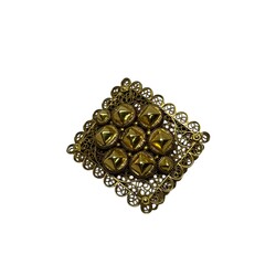 | Omschrijving | Een antieke 19e eeuwse 14 karaats (585/1000) vierkante gouden broche op filigrain achtergrond, met negen gouden knoppen. Mogelijk Zeeuws streeksieraad, halssnoer. |