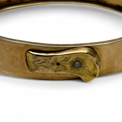 | Omschrijving | Een laat 19e of vroeg 20e eeuwse 14 karaats (585/1000) geelgouden damesarmband, met schade. |